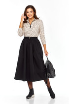 Передняя и задняя часть платья присборена, что визуально моделирует фигуру, делая акцент на талии и удлиняет линию ноги.
