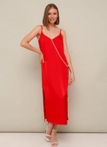Платье женское нарядное А-силуэта выполнено из блестящей ткани на трикотажной основе, застежка- молния по среднему шву спинки, фигурный рукав с манжетом на пуговице. Длина платья по спинке 101 см, длина рукава 56 см