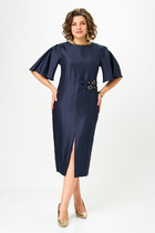 Чарисия – элегантное приталенное платье с поясом на резинке. Рукава “летучая мышь”, 3/4. Благодаря резинке-поясу платье отлично садится по фигуре. Такая модель отлично подходит для офисных будней, а также может стать великолепным решением для торжественного события.