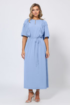 Треванно – платье полуприлегающего силуэта из однотонного трикотажа. Вырез горловины классический округлый. Рукава длинные, втачные. В боковых швах функциональные карманы. Платье отлично сочетается с различными украшениями, и великолепно подходит как для будней, так и для торжественных событий.