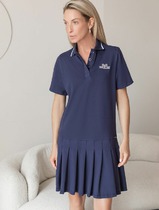 Платье прилегающего силуэта. Горловина круглая, по центру переда шов, по низу шва разрез, с левой стороны по линии талии декоративный элемент. Рукава втачные, фантазийной формы.