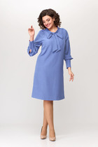 Элегантное женское платье из однотонной плательной ткани. Платье «А» образного силуэта с круглой горловиной оформленной стойкой, украшением служит съемный бант. Платье с фигурной проймой, рукав расширенный, со стойкой по окату и низу. Низ рукава оформлен широким манжетом с декоративными пуговицами. Платье без подкладки.
