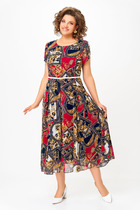 Юбка со складками по линии талии, расширенная к низу, на подкладке. По линии талии вставлен завязывающийся пояс.