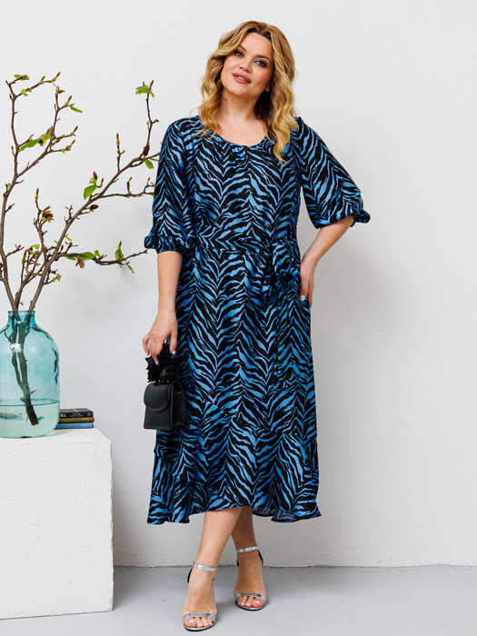 Платье длиной макси. Платье выполнено из струящегося шифона. Платье на подкладке. По низу расположены ассиметричные воланы. Платье отрезное по линии талии, в комплекте пояс из основной ткани. Рукав на резинке. Сзади располоен разрез и пуговица, для удобства надевания. В боковом расположена потайная молния. Длина- 125 см.
