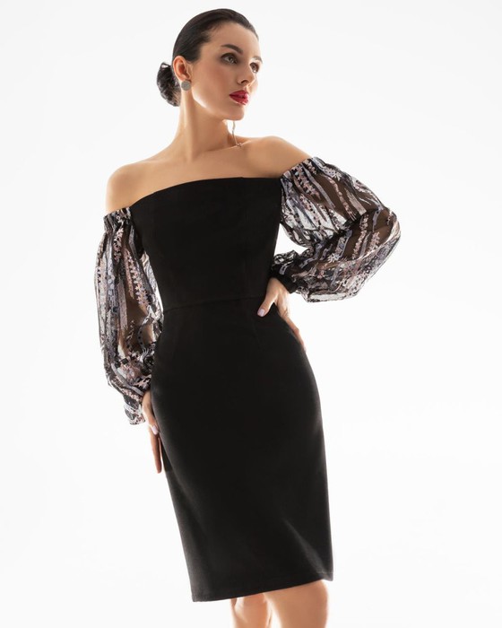 Ручная работа всегда была высшим классом в швейном производстве. Вышивка на сетке, использованная в декоре рукавов, делает это платье эксклюзивом.