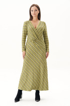Платье женское прилегающего силуэта из трикотажного полотна. Вырез горловины оформлен воротником рубашечного типа. Застежка - молния. Рукава - реглан со сложными архитектурными формами. Приталивание достигается фигурными рельефами.