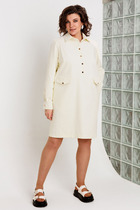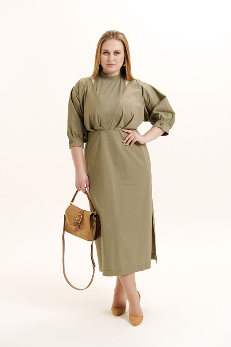 Красивое, стильное и элегантное платье прямого силуэта выполнено из хлопкового полотна и элит трикотажа. Модель платья классика с рукавом 3/4 ЛЕТУЧАЯ МЫШЬ, низ рукава на манжете. Горловина оформлена воротником - стойка из отделочной ткани с застежкой по спинке на потайную молнию , что делает платье универсальным нарядом в гардеробе любой женщины или девушки. На платье обработан подрез со складками. По боковому шву разрез.