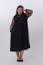 Платье полуприлегающего силуэта, длинной ниже линии бедер.