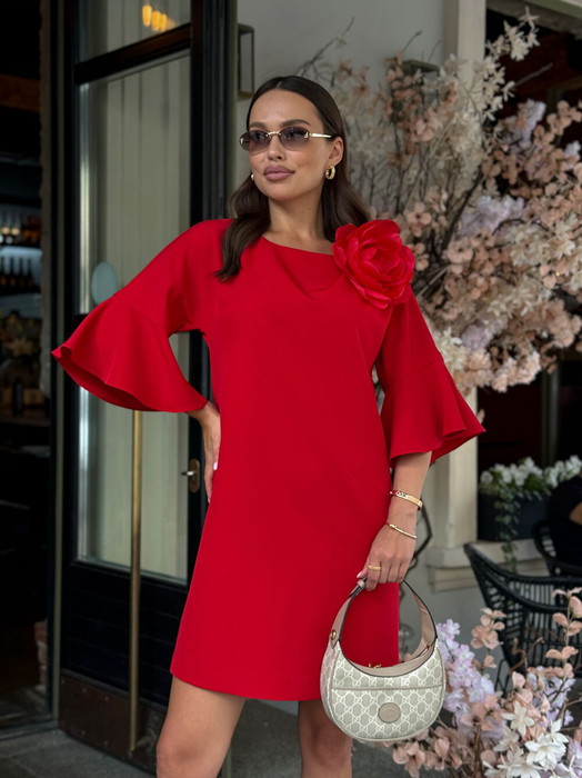 Рукава - цельнокроеные длиной до локтя, с притачным по низу воланом.