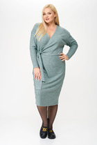 Платье из трикотажного полотна прилегающего силуэта. Ассиметричный вырез горловины в виде капли, обработан дополнительно трикотажной подкладкой до линии талии. Потайная молния вставлена в среднем шве спинки, сзади обработана шлица.