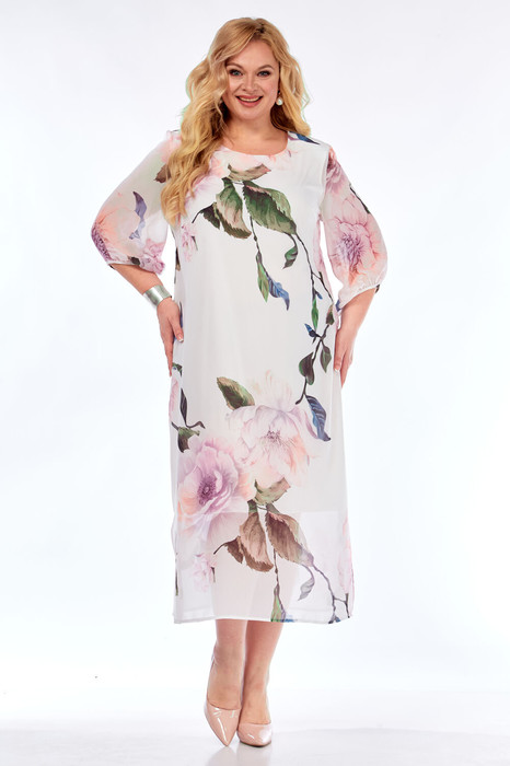 Совместные покупки Каменск-Уральский Женская одежда Платья — Платье Элль стиль 2376 белый/принт цветы