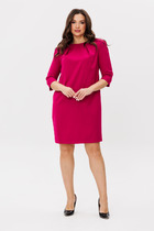 Платье женское, полуприлегающего силуэта. Вырез горловины V-образный. По переду подрезы и асимметричные драпировки. Спинка со средним швом, заканчивающимся шлицей. Рукав втачной, длинный.