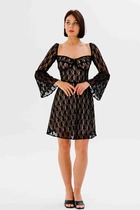 Откройте для себя воплощение красоты и совершенства. Платье выполнено из трикотажного полотна с люрексовой нитью. Модель с завышенной талией, V-образный вырез горловины, рукав 3/4.