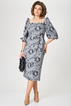Красивое платье приталенного силуэта. Округлая горловина на внутренней обтачке, по спинке разрез - капелька с застежкой на петлю и пуговицу. Втачной рукав 3/4, оканчивается притачной манжетой. Модель отрезная по линии талии. По талии проложена эластичная резинка, что дополнительно подчеркнет Ваш силуэт. Пояс - кушак из основного материала в комплекте.