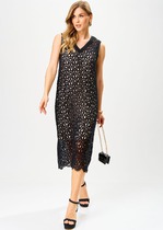 Платье выполнено из плательной ткани с принтом. Платье Х-образного силуэта, отрезное по линии талии, длиной миди. Перед лифа со средним швом и декоративным отверстием в форме круга со сборкой от него. Застежка на потайную молнию в среднем шве спинки. Горловина округлой формы. Юбка расширена к низу. Переднее и заднее полотнища юбки со средним швом. В боковых швах карманы. В комплект входит съемный ремень с обтяжной пряжкой.