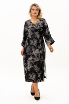 Платье женское выполнено из плательной ткани с полупрозрачными вставками из сетки. Изделие прямого кроя, по переду изделия расположен накладной карман. Горловина округлая. Рукав втачной-короткий.