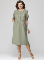 Платье женское выполнено из льна вишера, изделие отрезное по линии талии. Лиф изделия с v-образной горловиной и накладными карманами с клапаном, рукав втачной, приспущенный. На плечах платья расположены паты. По переду изделия планка с застежкой петля-пуговица. Юбка изделия разрезная по центру с совмещенной полоской. В боковых швах имеются функциональные карманы с клапаном. По талии расположена кулиса с поясом-завязкой. Низ изделия фигурный.Принт: Классическая тонкая полоска (диагональная и вертикальная), создающая интересный геометрический эффект.