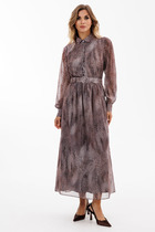 Платье женское повседневное полуприлегаюшего силуэта до талии с расширенной юбкой , выполнено из однотонного хлопка в полоску. Вырез горловины воротник на стойке рубашечного типа,застежка планка на обметанные петли и пуговицы, плечо спущенное , рукав втачной по низу на притачной манжете . В рукаве притачная пата с помощью которой можно менять длину рукава. Юбка из трех воланов на подкладке,в боковых швах обработаны карманы.На левой стороне полочки платья накладной карман с пряжкой . Декором платья служат отделочные пуговицы и накладной карман с пряжкой .