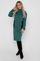 Платье женское нарядно-повседневное полуприлегающего силэта до талии. Выполненео из трикотажного полотна в сочетании с шифоном. Вырез горловины круглый на обтачке. По спинке застежка капелька на навесную петлю и пуговицу. Рукав втачной 7/8 по верху со встречной складкой. Платье отрезное по талии, верх из трикотажного полотна , низ платья юбка со сборкой. декором платья служит съемный пояс в цвет юбки.