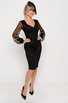 Платье без рукава с отрезным лифом и конической юбкой - силуэт песочные часы. По центру полочка - сквозная застёжка -молния. На передних полотнищах юбки - прорезной карман с молнией. По талии - кулиса с регулирующейся тесьмой и фиксаторами.