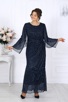 06.04 Vilatte Платье из премиального хлопка с вышивкой на рукаве D42.090 лазурн