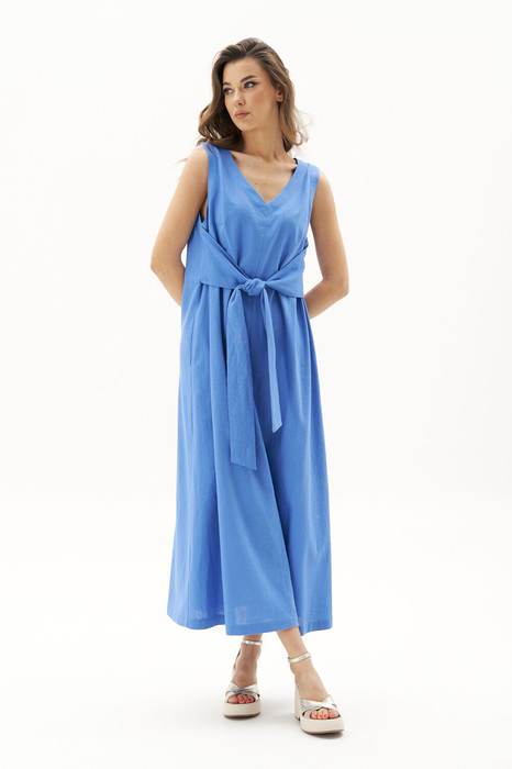 Главная составляющая лета - конечно же платье , а главное полотно лета - конечно же лён. Мы обожаем этот лёгкий и домашний материал, который всегда эффектен и выглядит дорого. Роскошное и лаконичное платье А-силуэт, свободного покроя с V-образным вырезом и поясом-бантом. Модель с прилегающим верхом и расширенным низом максимально выгодно подчёркивает талию и зрительно вытягивает силуэт.