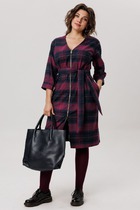 Интересная фактура полотна с геометрической вышивкой и необычный крой превращают простое платье в модель со знаком +. Свободный А-образный силуэт, изящный покрой выше линии талии, подтягивающаяся кулиса с завязкой и романтичный волан.