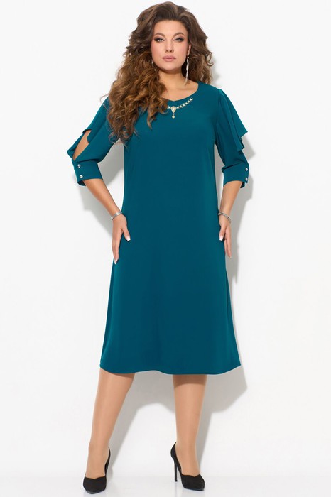 Платье нарядное "Ясмина", расширенное к низу. По груди выточка, вырез горловины у-образный с пришивным украшением (украшение как на главном фото). По спинке потайная молния, рукав в виде воланов с манжетой на застежку на две пуговицы. Край волана рукава обработан швом в подгибку. Низ платья обработан в подгибку.