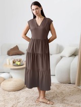 Платье полуприлегающего силуэта, застежка - двубортная. По краю борта пришита декоративная рюша, воротник отложной пиджачно-рубашечного типа. Платье можно застегивать доверху или в виде жакета. Рукава двухшовные втачные, низ рукава обработан швом в подгибку с открытым срезом. Застежку платья украшает десять пуговиц, что придает нарядности, повседневности, элегантности и уверенности. По полочке - рельефы, по спинке - отрезная кокетка, средний шок и выточки. Низ платья обработан швом в подгибку с открытым срезом.
