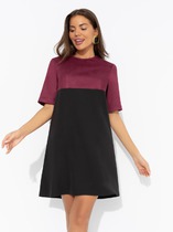 Платье женское прилегающего силуэта из трикотажной ткани.По переду горловина лодочкой. Спинка со средним швом, заканчивающаяся разрезом.
