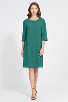Платье прямого силуэта из бархата. В боковом шве разрез. Рукав втачной одношовный. По спинке застежка капелька на петлю и пуговицу. Длина платья - 136 см, длина рукава - 66 см.
