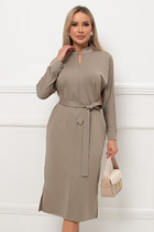Платье свободного силуэта из трикотажной ткани с принтом. Рукав втачной одношовный со складками по низу и манжетой. В боковых швах карманы. Горловина обработана планкой в форме лодочки. По переду в в ерхней части настрочена сетка. Длина платья - 91 см , длина рукава платья - 53 см.