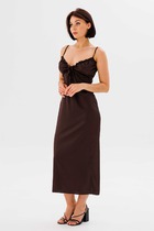 Платье без застежки, без воротника, с V-образным вырезом горловины. Перед цельный, спинка со средним швом, заканчивающимся шлицей. Рукав втачной, длинный. Платье со съемным поясом из кожезаменителя.