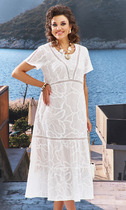 Платье беззастежки, без воротника, с V-образным вырезом горловины. Перед цельный, спинка со средним швом, заканчивающимся шлицей. Рукав втачной, длинный. Платье со съемным декоративны поясом из кожезаменителя.