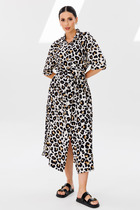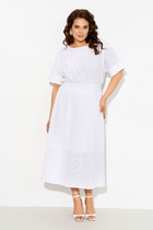 Платье с отрезным присборенным воротником- стойкой, горловина переда с разрезом, застегивающимся на одну навесную петлю и пуговицу. Платье отрезное по линии талии, шов по талии присборен. По низу платья- отрезная кокетка и деталь- гофре. Рукав втачной, длинный, с отрезной манжетой, застегивающейся на одну петлю и пуговицу. Платье со съемным поясом. На боковых швах расположены шлевки для пояса.