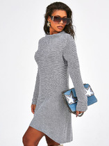 Это модное вязаное платье с А-образным силуэтом представляет собой утонченное сочетание стиля, простоты и комфорта. Его длина создает интересный и изысканный контраст, достигая середины бедра спереди и колена сзади, что придает образу кокетливый, но изящный вид. Свободный рукав реглан-погон уравновешивает силуэт. Вырез горловины округлой формы с цельновязанным воротником стойкой дополняет образ, придавая ему стильный завершенный вид. Это платье идеально подойдет как для повседневного использования, так и для особых случаев, подчеркивая ваше неповторимое чувство вкуса.