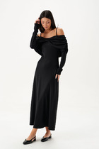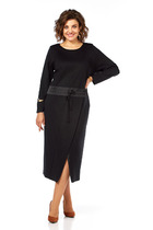 Платье женское полуприлегающего силуэта, по спинке застежка-молния; по низу рукавов декоративные бусины - жемчуг.