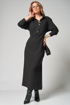 Vilatte Платье из трикотажа в широкий рубчик с разрезами D42.096 черный-белый