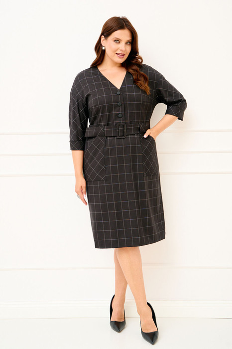 Женское платье полуприлегающего силуэта выполнено из плательной ткани "в клетку". Изделие с горловиной V-образной формы застегивается на петли и пуговицы и имеет рукава со спущенной линией плеча и манжентой по низу. По переду платья находятся накладные функциональные карманы, переходящие в шлевку, которая держит пояс. В комлекте съемный пояс из основной ткани. Платье полностью соотвествует заявленному размеру. Пожалуйста, пользуйтесь таблицей обмеров готового изделия.