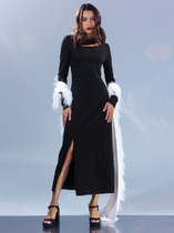 "Платье женское прямого силуэта, изготовлено из натуральной ткани. Горловина круглой формы. По переду обработаны нагрудные вытачки. На спинке средний шов. В боковых швах обработаны карманы, внизу разрезы. Рукава втачные, разрезные с фигурным вырезом. Платье декорировано дизайнерской вышивкой.