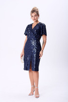 Длина платья по спинке — 129 см, длина рукава — 25 см, длина плеча — 11 см.