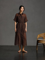 Платье женское, А- силуэта, выполнено из натуральной льняной ткани. Горловина округлой формы, обработана контрастным кантом. Перед с ассиметричными подрезами и нагрудными вытачками. Подрезы выделены контрастным кантом. Спинка со средним швом, в котором обработана застежка на навесную петлю и пуговицу. Рукава втачные. Платье дополнено дизайнерской вышивкой в технике ришелье.