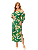 Платье женское из трикотажного полотна «кулика» с набивным рисунком, отрезное по линии талии, с короткими втачными рукавами, горловиной овальной формы и центральной бортовой застежкой по лифу на петли и пуговицы. Юбка – из двух ярусов, каждый из которых присборен по шву стачивания с верхней деталью. Горловина овальной формы окантована по спинке и обтачана по переду.
