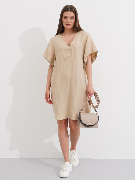 Платье женское из смесовой ткани с добавлением льна для повседневной носки. Платье прямого силуэта. Перед имеет средний шов. Низ по переду и по спинке полукруглый. Горловина обработана планкой в нахлест с V-образной горловиной. Линия плеча чуть спущена. Рукава втачные длинной чуть выше локтя, низ рукава обработан отлетной манжетой. Длина изделия на уровне колена. Легкое и очень стильное платье, которое будет давать настроение на каждый день. Данное платье станет не заменимой вещью в вашем гардеробе, оно обязательно покорит вас своей чудесной посадкой.