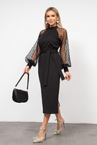 Классическое нарядное платье для особых случаев. Застежка на потайную молнию в среднем шве спинки. Платье отрезное по линии талии. Силуэт прилегающий. Платье на подкладке.