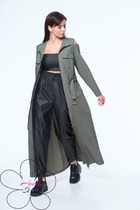 Платье в стиле "сафари" длиной макси со свободной юбкой и укороченными рукавами. Застёжка центральная на молнию, съемный пояс на резинке. По переду платья расположено четыре накладных функциональных кармана. По плечам декоративные паты. Размер на модели -44, рост модели 175 см.