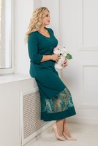 Невероятно женственное платье с воздушными рукавами на резинке и серебряными бретелями позволит создать утончённый вечерний образ. Приталенный силуэт и элегантный вырез подчеркнут изящность линий женской фигуры. Сбоку изделие украшает деликатный разрез, который придает кокетства и визуально удлиняет ножки. Рукав можно приспустить с плеча, а бретели платья сконструированы так, чтобы скрыть бретели бюстгальтера.