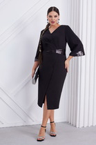 Платье полуприлегающего силуэта, чуть расширенное книзу из джинсовой ткани. Воротник пиджачного типа, застежка по центру на петли и пуговицы. Спущенная линия плеча с манжетой. Платье отрезное по линии талии. По переду и спинке кокетка и рельефы. В комплект входит съемный ремень.