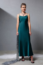 Платье на бретелях полуприлегающего силуэта из ришелье. По переду и спинке притачной пояс. На лифе переда нагрудные вытачки, на спинке – талиевые. Нижняя часть платья со сборкой по линии притачивания с поясом. В боковом шве потайная молния.