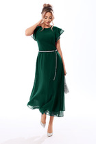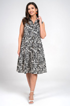 Стильное летнее платье свободного силуэта с коротким втачным рукавом. Оригинальная обработка горловины придает платью неповторимый шарм. По низу платье дополнено сборкой на эластичную тесьму, что придает легкий объем. По спинке застежка на пришивную пуговицу. В боковых швах расположены удобные карманы. Длина платья от плечевого шва 128см. Длина рукава 20см.